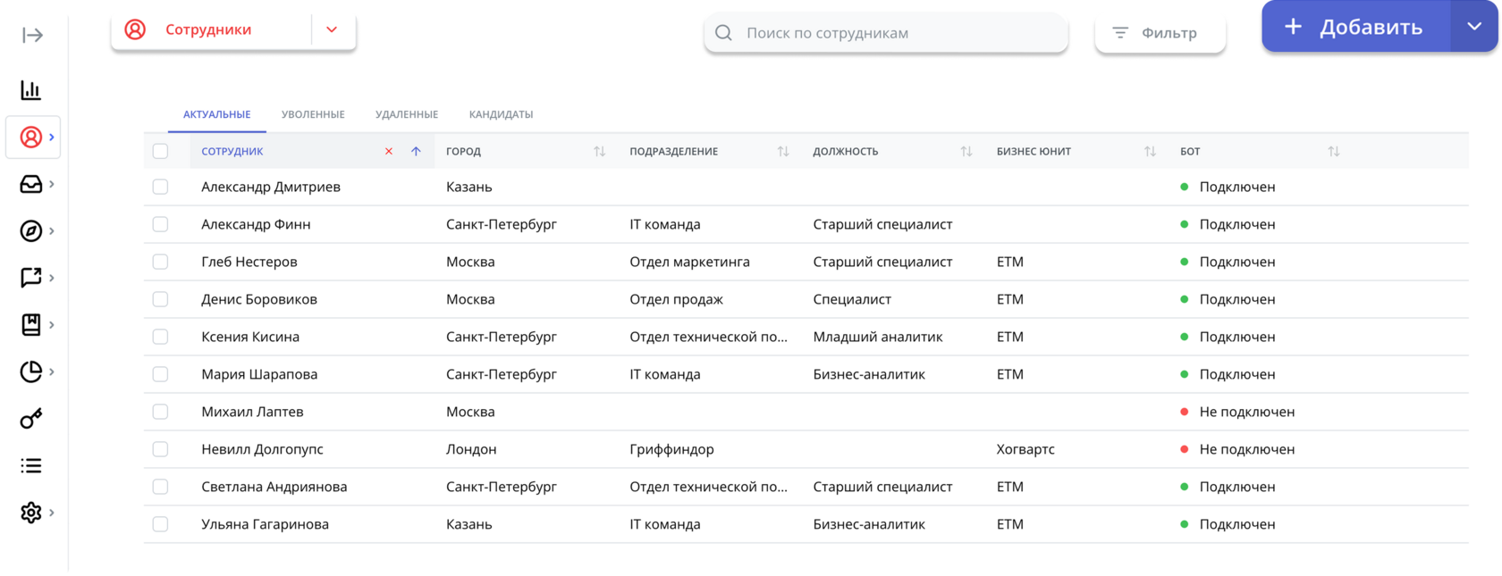 В чат-бота попадают только верифицированные сотрудники, данные которых занесены в платформу